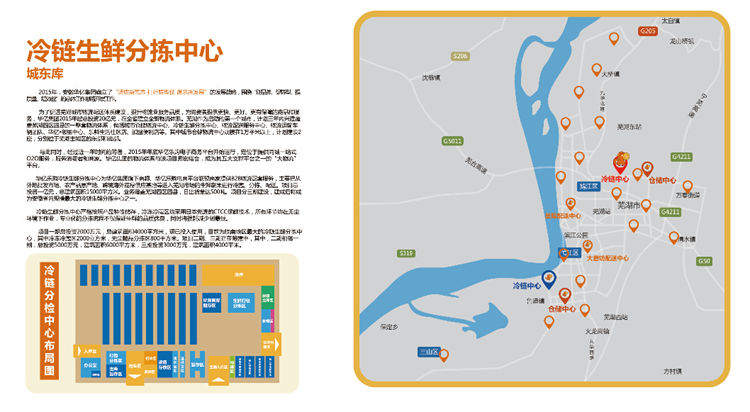 1、華億樂購冷鏈生鮮分揀中心為華億集團集團旗下商超、華億樂購電商平臺聯(lián)盟商家提供B2B物流配套服務,主要把從外地批發(fā)市場、農產品原產地、跨境海外商品供應基地等進入蕪湖市場的生鮮蔬果進行冷藏、分揀、配送。項目總投資一億元,總建筑面積15000平方米。業(yè)務覆蓋蕪湖四區(qū)四縣,日出貨量達500噸。項目分三期建設,建成后將成為安徽省內規(guī)模最大的冷鏈生鮮分揀中心之一。