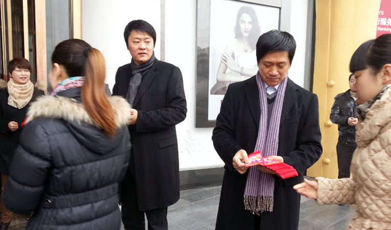 爆竹聲聲辭舊歲,龍騰虎躍賀新春。2013年2月10日,農歷大年初一,伴隨著陣陣寒風,新年的第一天上午,華億集團董事長項義水、副董事長章國琴、總裁項領等領導深入工作第一線給商場員工拜年并派發紅包。