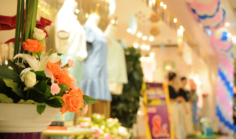 除折扣優(yōu)惠外,華億國際購物中心在購物氛圍營造方面下足了功夫。活動前夕,華億國際購物中心工作人員對商場布置統(tǒng)一的活動導(dǎo)視標(biāo)識,統(tǒng)一的折扣標(biāo)識。各貨品專柜根據(jù)自己品牌特色及活動主題,布置相應(yīng)的氣球拱門、鮮花立柱、水果飲品等,給購物中心營造出一種節(jié)日的氣氛,讓消費者在這種輕松、優(yōu)雅、愉悅的環(huán)境中享受購物的樂趣。