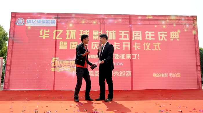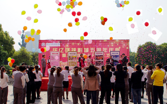 5月1日,華億環(huán)球影城五周年典禮暨周年慶典卡開卡儀式在華億國際B座東門廣場舉行,拉開了影城五周年慶典系列活動的序幕。華億集團(tuán)總裁、偉晨文化公司董事長項(xiàng)領(lǐng),副總裁顧踴躍,黨委書記、副總裁陳愛國,副總裁張靖,偉晨文化公司總經(jīng)理孫艷參加慶典儀式,并為華億環(huán)球影城周年慶典卡開卡。