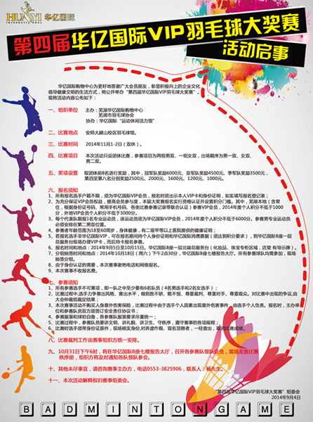 附:第四屆華億國際VIP羽毛球大獎賽活動啟事