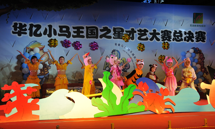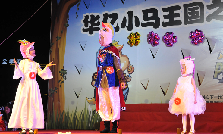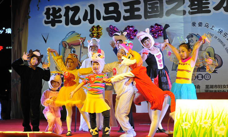 國慶節第一天的步行街人山人海,傍晚時分,“華億小馬王國之星”才藝大賽總決賽現場人頭攢動,熱鬧非凡?!叭A億小馬王國之星”才藝大賽自啟動以來,經過初賽、復賽的層層選拔,36位小選手入圍總決賽,并結合各自的特長分成6個小組,由北京、上海、蕪湖等地專業培訓機構的導師進行一個多月的排練,在總決賽上展開小馬王國童話劇表演比拼。