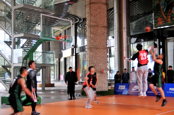 17日上午,本屆3V3籃球賽在華億國(guó)際AB座連廊天橋下舉行,華億國(guó)際副總經(jīng)理?xiàng)钇G菁女士、華億國(guó)際大客戶(hù)部經(jīng)理張曉華、華億國(guó)際運(yùn)動(dòng)商場(chǎng)經(jīng)理柳靜出席開(kāi)幕式。楊艷菁副總經(jīng)理代表大賽主辦單位致辭并宣布大賽開(kāi)幕。