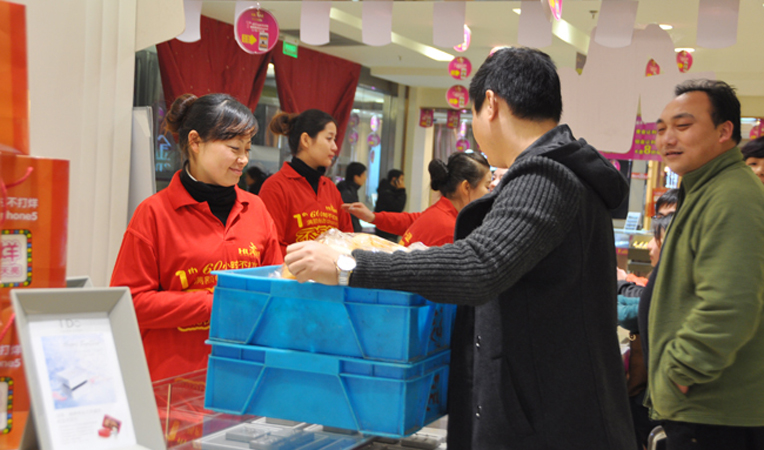 這次以“60小時(shí)不打烊,通宵購(gòu)物到天亮”為形式的活動(dòng)在蕪湖商界是一次新鮮的嘗試。而對(duì)于江城的消費(fèi)者來(lái)說(shuō),華億國(guó)際的特別促銷方式也可謂是新穎別致,實(shí)惠多多。其中,不管是滿99減70/60/50的巨大讓利,還是開(kāi)門(mén)瘋搶送好禮、層層勁爆增好禮、午夜狂送IPhone5等送禮活動(dòng),都讓喜歡購(gòu)物的消費(fèi)者們欣喜不已。在活動(dòng)期間,消費(fèi)者經(jīng)常拿著活動(dòng)宣傳DM、報(bào)紙等詢問(wèn)華億的工作人員,哪些品牌參加活動(dòng),贈(zèng)送什么樣的禮品,送IPhone5的時(shí)間段等。本來(lái)還猶豫要不要買(mǎi)的商品,得知有如此實(shí)惠的活動(dòng)后,人們都開(kāi)心不已,立刻決定購(gòu)買(mǎi)。