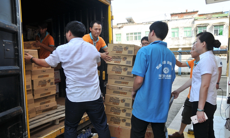• 7月7日,華億救援小隊再次出發,華億樂購物流車滿載著災區急需的物資,前往重災區繁昌縣平鋪鎮漳河大堤救災物資接收點。