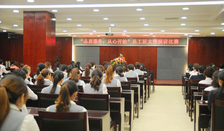 2012年10月18日上午,“微笑服務、溫馨窗口” 系列活動之三——“品質服務,從心開始”員工征文暨演講比賽在華億國際7樓報告廳舉行。華億集團副董事長、華億國際副總經理章國琴,華億集團副總裁張靖,偉晨文化總經理兼華億國際副總經理孫艷,華億國際藝術總監潘金華等擔任此次比賽評委。華億國際經營班子成員和員工代表近200人參加了活動。